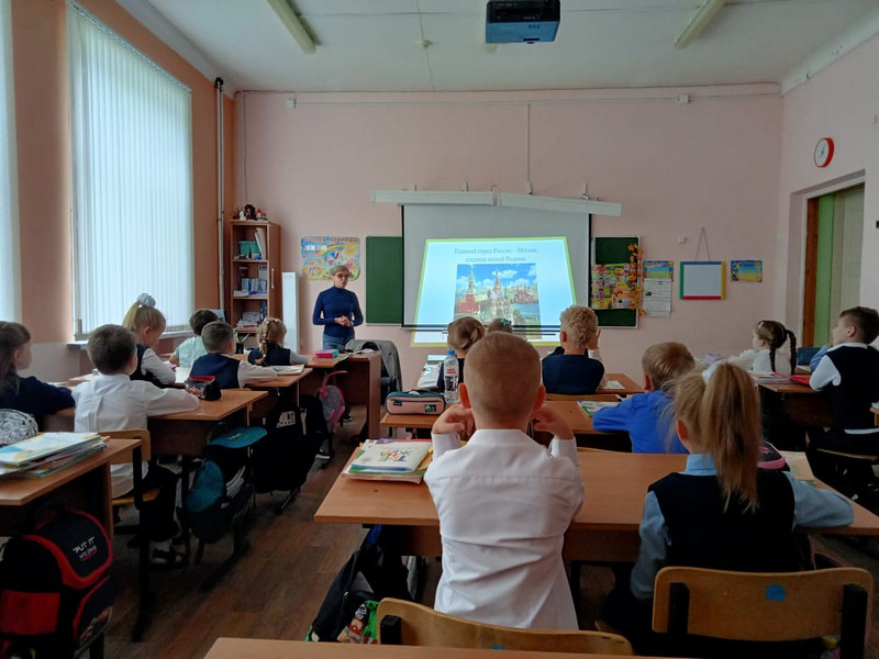 Участники мероприятия узнали много интересного о столице нашей Родины городе-герое Москве, о государственных символах страны. Послушали стихотворения о гербе и флаге России. Ребята узнали, что означают три цвета российского флага, куда смотрит двуглавый орел на гербе России, о том, что автор слов гимна – «тот самый» Сергей Михалков. Библиотекарь познакомила участников с любимой всеми с детства русской деревянной матрешкой. Во время викторины дети активно отвечали, как называется самый главный город страны, что обозначают цвета российского флага, как зовут человека, который любит свою Родину, вспоминали пословицы о Родине, отгадывали загадки.