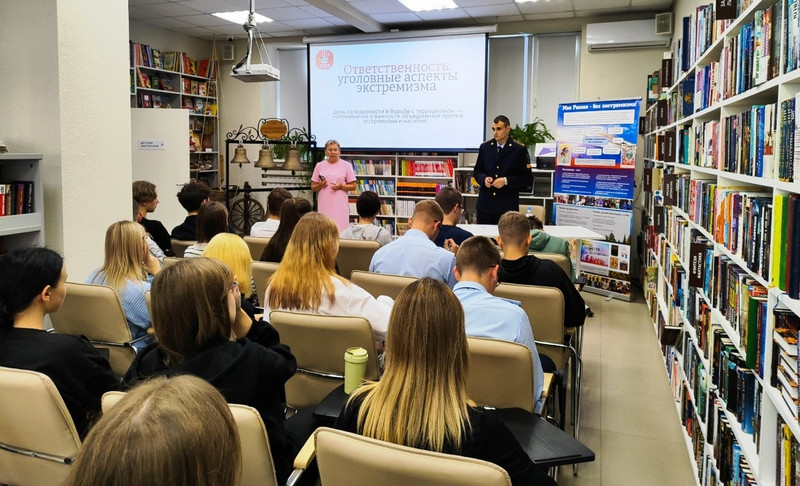 Гостем модельной библиотеки стал ученик Александра Польшикова, курсант третьего курса юридического факультета Воронежского института МВД Дмитрий Федоров, который посвятил познавательный правовой час профилактике втягивания молодежи в диверсионно-террористическую деятельность. Встреча была подготовлена в целях снижения экстремистской активности, недопущения совершения преступлений и вовлечения граждан в противоправную деятельность, чтобы сформировать у подрастающего поколения стойкую нетерпимость к опасной идеологии.