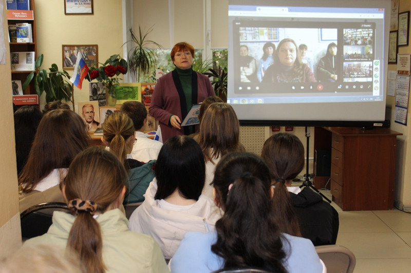 Далее заведующая библиотекой – филиалом №3 им. Н. Островского Ардемасова В.В. раскрыла перед слушателями захватывающую панораму общих исторических судеб Крыма, Донбасса, Херсона и Запорожья. Экскурс в прошлое начался с упоминания о Таврической губернии, исторического образования, объединившего эти земли под сенью Российской империи. Библиотекарь подчеркнула, что, несмотря на административные изменения и перипетии истории, духовная и культурная связь между этими регионами оставалась неразрывной. Во времена войн и потрясений жители Крыма и Новороссии плечом к плечу отстаивали общие интересы, демонстрируя единство духа и готовность к самопожертвованию. Особо внимательно слушали старшеклассники рассказ о керчанах – погибших в ходе СВО на Донбасской земле.