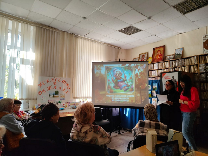 Теги: ф.9К Международному дню пожилых людей Библиотека №9 им. А.В.Жигулина представила в учреждении социальной защиты для граждан пожилого возраста и инвалидов мероприятие «Пусть будет тёплой осень жизни».