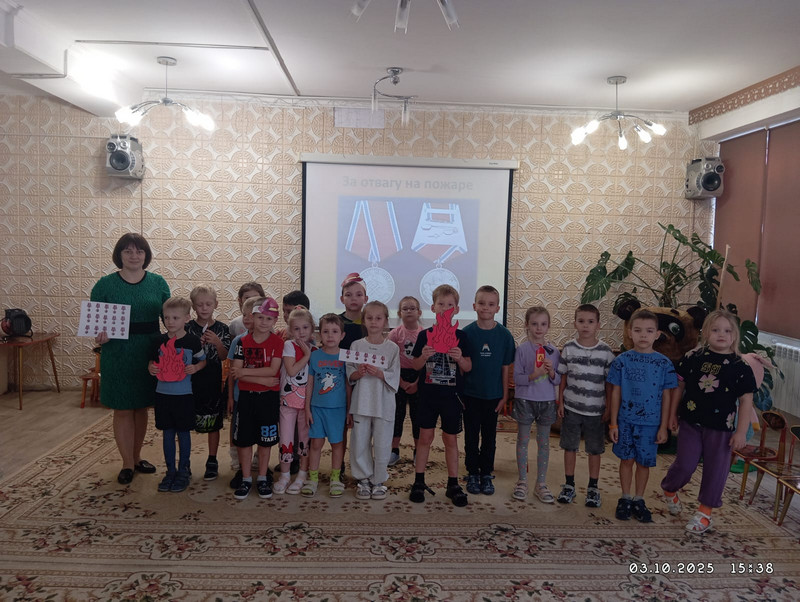 Полученные знания ребята закрепили в подвижной игре «Я – пожарный» и проверили себя в викторине «Профессия – пожарный». За активное участие дети получили наклейки с медалью «За спасение на пожаре».