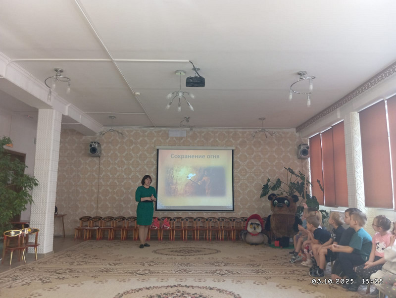 Библиотекарь рассказала дошкольникам о взаимодействии с огнем на протяжении всей истории человечества и о развитии и совершенствовании пожарно-сторожевой охраны. Дети узнали о навыках, обязанностях, необходимом снаряжении и оборудовании пожарных. Вместе с ребятами мы вспомнили о причинах возникновения пожара в помещении и в природе, а также обсудили спасительные правила поведения во время этой чрезвычайной ситуации.