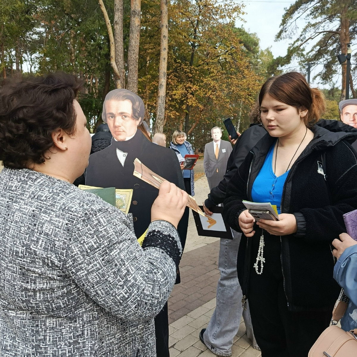 Теги: ф.10, форум20257 октября библиотека № 10 приняла участие в корпоративном флешмобе «Писатели среди нас», который прошел в рамках V Воронежского краеведческого библиотечного форума. Мероприятие состоялось на территории городского парка Алые паруса. Сотрудник библиотеки познакомила гостей с творчеством воронежского писателя Алексея Васильевича Кольцова. Они узнали о нелёгкой судьбе поэта-песенника: несчастной любви, многочисленных встречах с писателями того времени, участии в литературных кружках. Были прочитаны стихотворения. Посетители получили в подарок закладку для книги, которая содержала портрет Алексея Васильевича и некоторые факты его биографии.