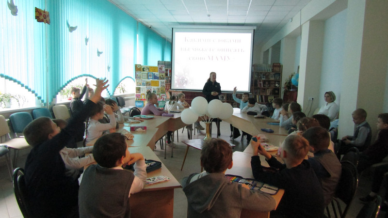 Детям было рассказано об истории Дня матери в нашей стране и в других странах мира. В ходе встречи звучали трогательные стихи, посвящённые мамам, написанные знаменитыми отечественными поэтами. Школьники вспомнили народные пословицы о мамах и справились с вопросами слайд-викторины «Сказочные мамы».