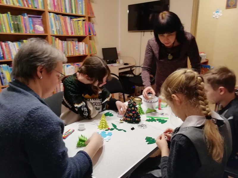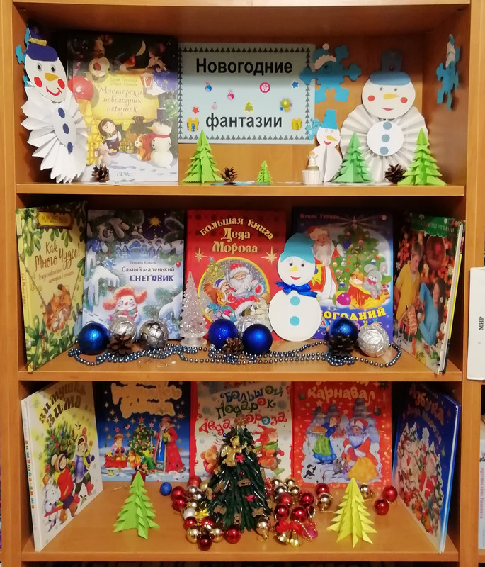 Теги: ф.42Наступление Нового года отмечают во всем мире. В каждой стране сложились свои традиции и обычаи празднования этого дня. Библиотека №42 в преддверии новогодних праздников провела для читателей: час досуга с рассказом об обычаях и новогодних традициях, громкие чтения отрывков из книги Татьяны Коваль «Самый маленький снеговик» и мастер-класс по изготовлению новогодней ёлочки из фетра, снеговика из бумаги. Каждый участник внёс своё авторство. Получились весёлые и яркие игрушки, наполненные праздничным настроением, которые можно повесить на ёлку. Сотрудники библиотеки оформили иллюстрированную книжную выставку «Новогодние фантазии».
