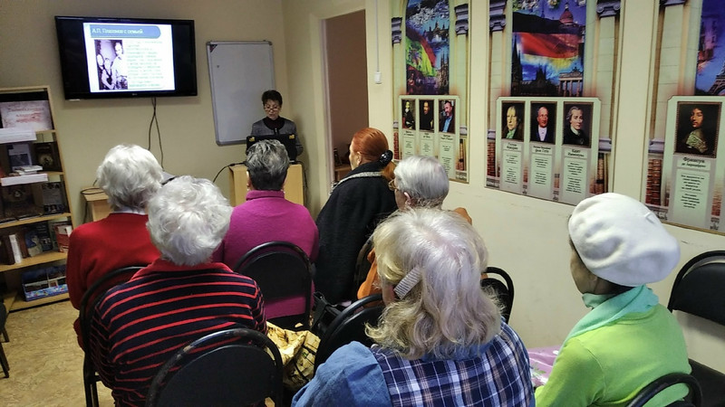 13 января в библиотеке №26 состоялось очередное заседание клуба «Живое общение». Для участников клуба сотрудники библиотеки провели литературный час «Творческое наследие Андрея Платонова». Ведущая познакомила с жизнью и творчеством Андрея Платонова. Была представлена презентация самых известных произведений писателя. Зачитывались отрывки из книги «Котлован», «Епифанские шлюзы», «Впрок». Читатели узнали много нового и интересного о жизни и творчестве такого сложного и замечательного писателя. Платонов оказал огромное влияние на русскую литературу, а его книги в настоящее время вызывают споры и размышления о смысле жизни, власти и человеческой судьбе.