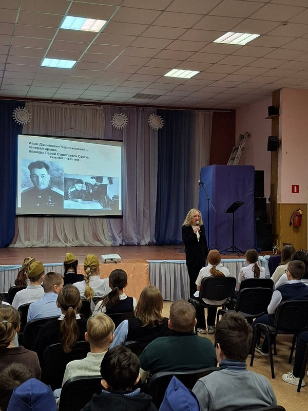 Теги: ф.27В преддверии празднования памятной даты – 83-ей годовщины освобождения г.Воронежа от немецко-фашистских захватчиков, сотрудники библиотеки №27 и клуба «Тенистый» провели мероприятие с учащимися 5-х и 6-х классов МБОУ СОШ№72 им.Ю.В.Лукьянчикова. Заведующий библиотекой №27 Котова Л.А. рассказала о битве за Воронеж, о героях и их подвигах. В ходе встречи школьники узнали о Черняховском Иване Даниловиче, дважды Герое Советского Союза, который во время сражения за Воронеж и Верхний Дон командовал 18-м танковым корпусом, затем войсками 60-й армии и был самым молодым генералом армии и командующим фронтом в истории Советских Вооруженных сил. Школьники познакомились с интересной биографией талантливого военачальника, его мастерством и личным вкладом в Победу над фашизмом, узнали, как увековечена память о Черняховском в Воронеже, городе, который он освобождал в 1943 году. Во второй части вечера прозвучали песни военных лет в исполнении художественного руководителя клуба «Тенистый» Апаркина А.Е.. В заключение присутствующие почтили память павших в Великой Отечественной войне минутой молчания.