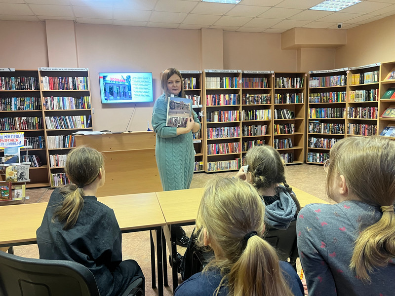 В начале мероприятия юные читатели посмотрели тематическую презентацию и вспомнили основные вехи в истории города - от основания до наших дней. Поговорили о гербе города и его символике, основных достопримечательностях, литературных памятниках, парках.