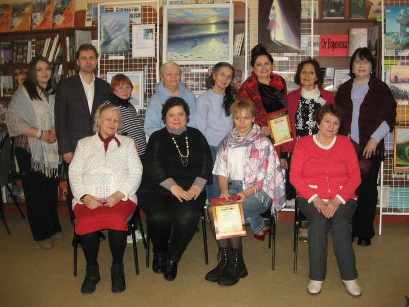 Встреча проходила на фоне прекрасных работ современных воронежских художников арт-группы «Под знаком бесконечности», куратором которой является член Союза профессиональных художников России - Болдырева Ольга.