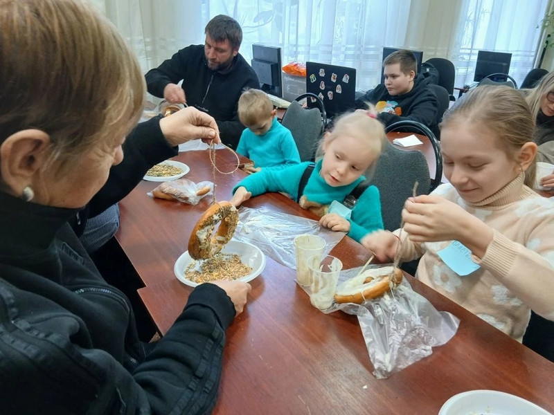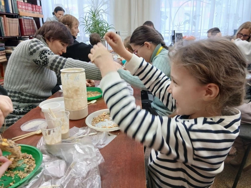 Участники встречи с увлечением читали любимые произведения В. Бианки, погружаясь в мир природы и узнавая больше о повадках пернатых, после чего изготовили экологически безопасные кормушки из полностью съедобных и биоразлогаемых материалов. Дети и взрослые с энтузиазмом мастерили простые, но эффективные угощения, которые впоследствии будут развешаны, чтобы помочь птицам найти корм в эти непростые месяцы.