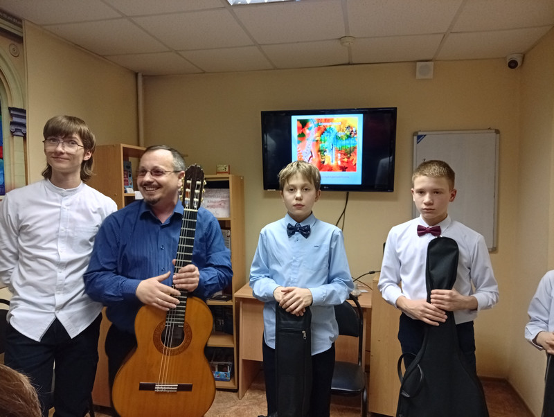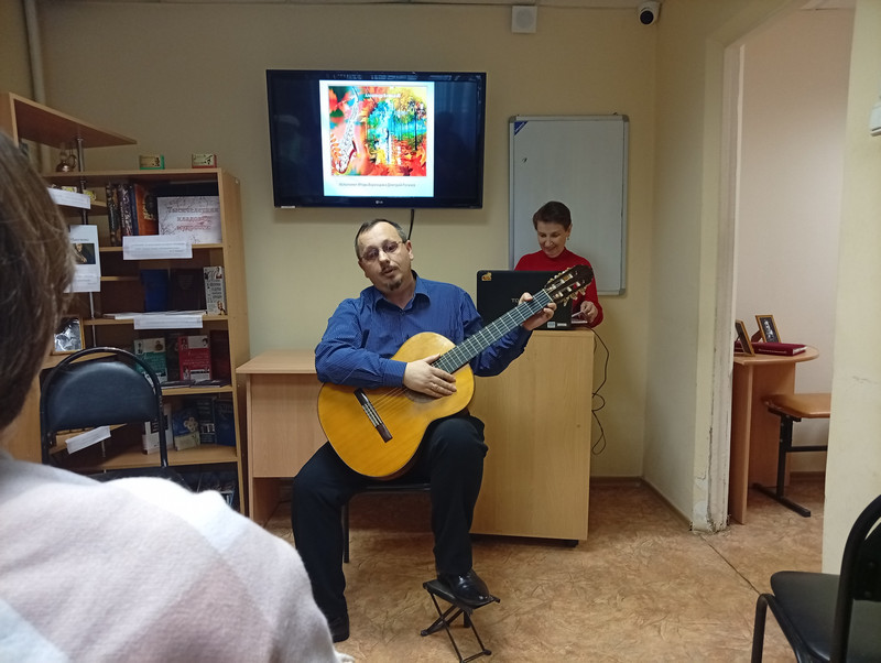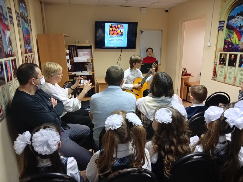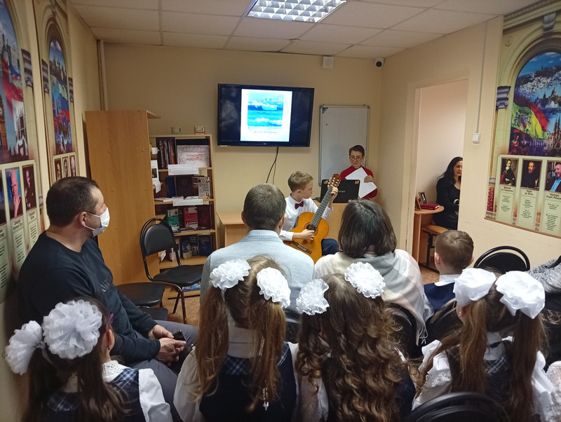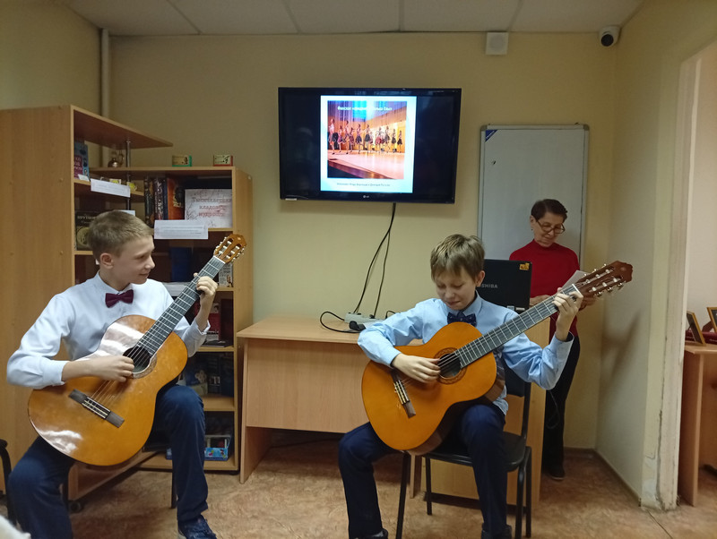 3 марта в библиотеке №26 состоялся праздничный концерт «В этот день, весной согретый, все цветы, улыбки – вам!». Юные музыканты - гитаристы центра «Созвездия» и ансамбль «Музыкальные феи» школы № 95 поздравили присутствующих с женским праздником и пригласили совершить увлекательное путешествие и окунуться в волшебные звуки гитарной музыки и замечательных песен. На концерте звучала и джазовая музыка, и красивая мелодия для гитары.