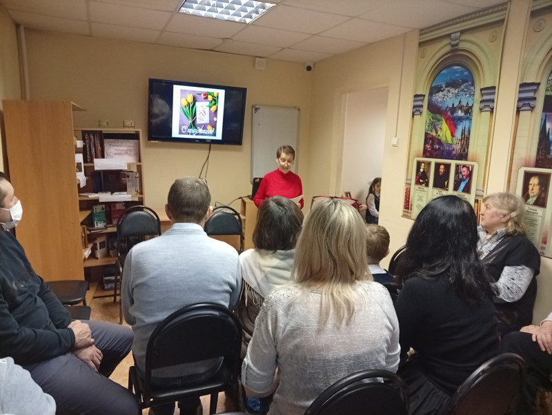 Библиотекари подготовили концертную программу и красочную презентацию. Ведущая концерта поздравила всех присутствующих с праздником весны.
