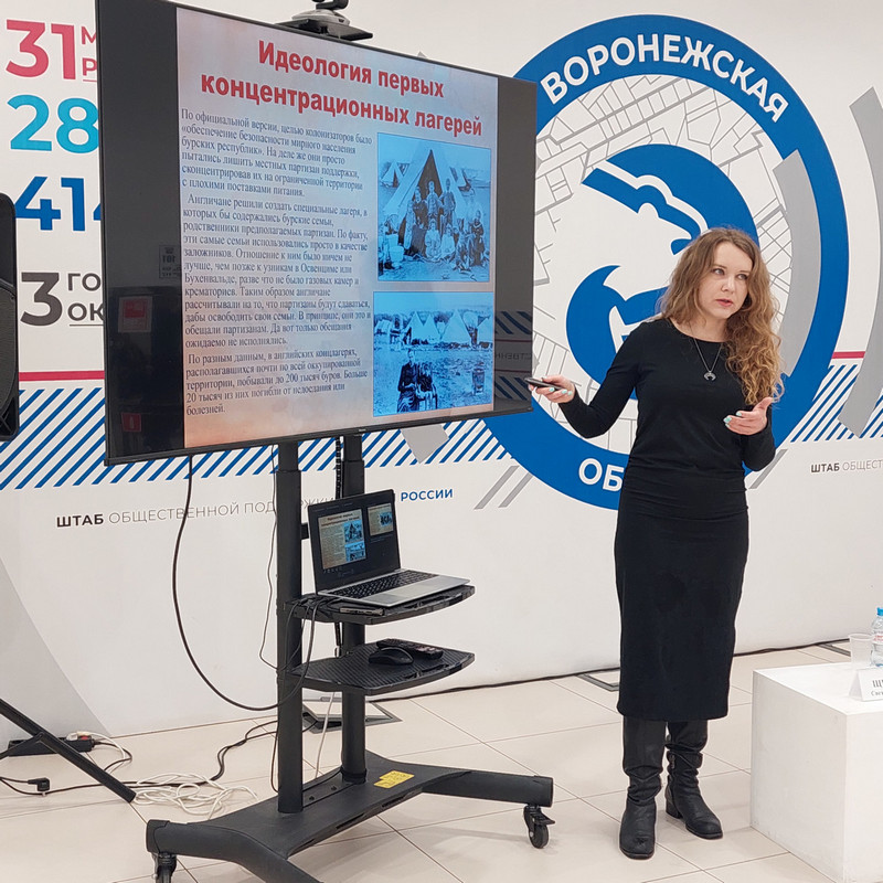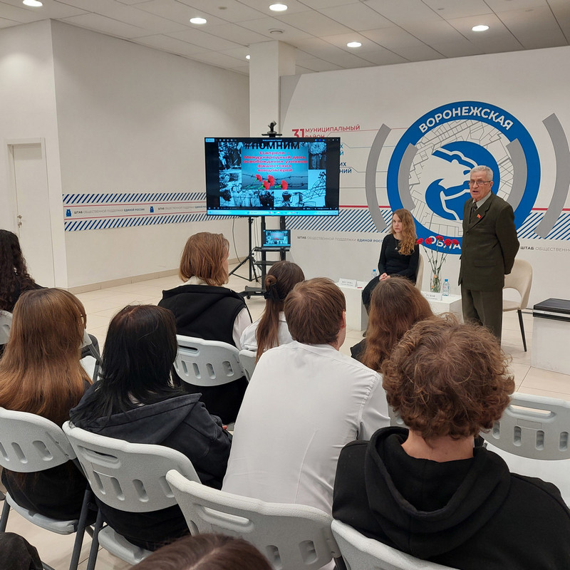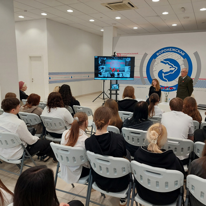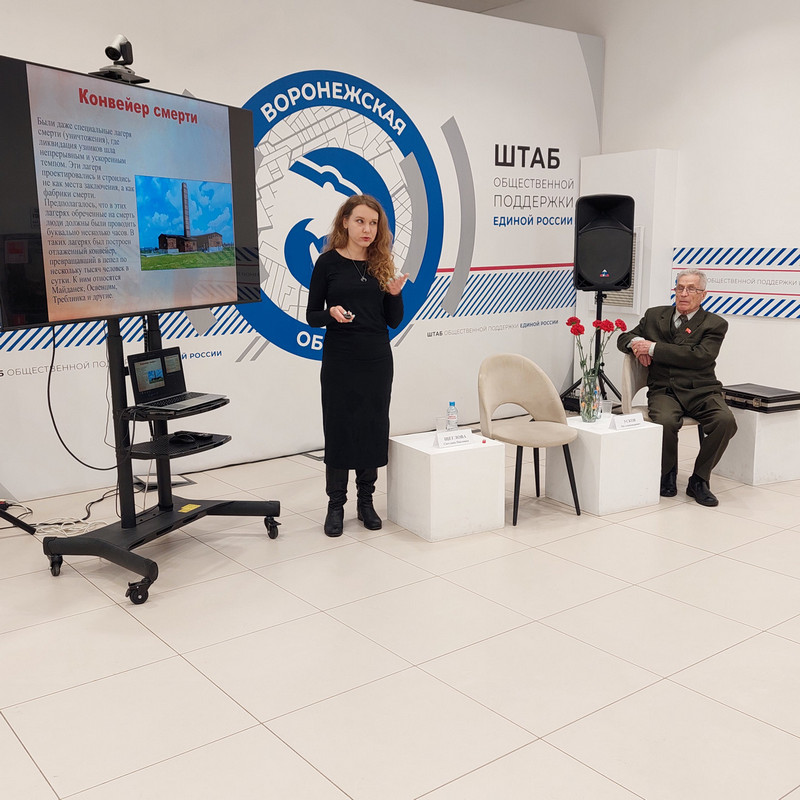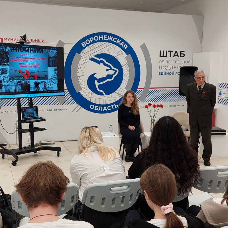 10 апреля заведующий библиотекой № 8 им. В.А. Кораблинова Светлана Павловна Щеглова провела вечер памяти в Штабе общественной поддержки партии «Единая Россия». Мероприятие прошло в преддверии Дня памяти узников концлагерей. В качестве аудитории выступили студенты Воронежского техникума пищевой и перерабатывающей промышленности, члены историко-патриотического клуба «Патриот».