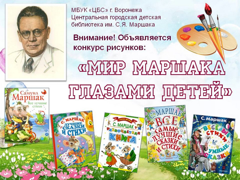 Центральная городская детская библиотека имени С.Я. Маршака приглашает вас в яркий и удивительный мир творчества! В честь дня рождения любимого детского поэта мы запускаем конкурс рисунков «Мир Маршака глазами детей».