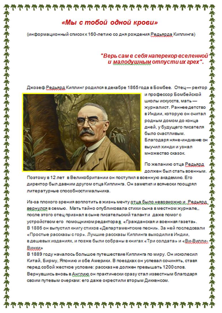 Для оформления выставок и проведения мероприятий приводится, информация о литературной премии имени писателя, экранизациях произведений И.Бунина.